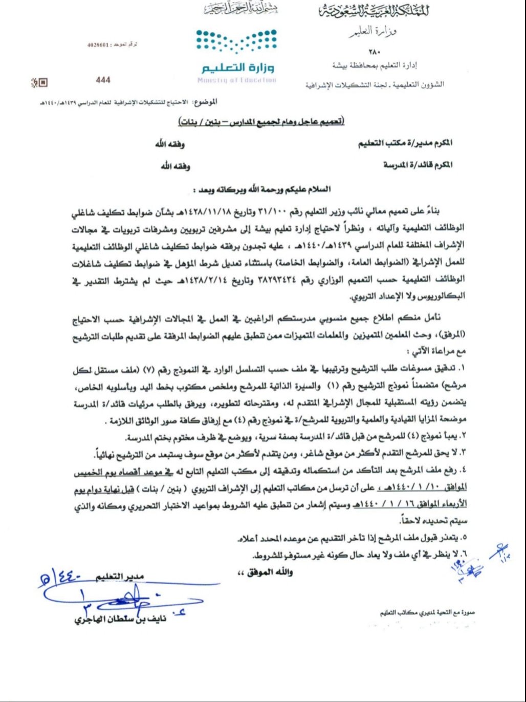 ناجـي السبيـعي Twitterissa عاجل وم هم لجنة التشكيلات الإشرافية بـ تعليم بيشة تعلن عن مقاعد الاحتياج في أقسام الإدارة ومكاتب التعليم بنين وبنات للعام الدراسي ١٤٤٠ ١٤٣٩هـ وفق الآلية المعلنة في التعميم أدناه Https T Co Ljlg3lf16g