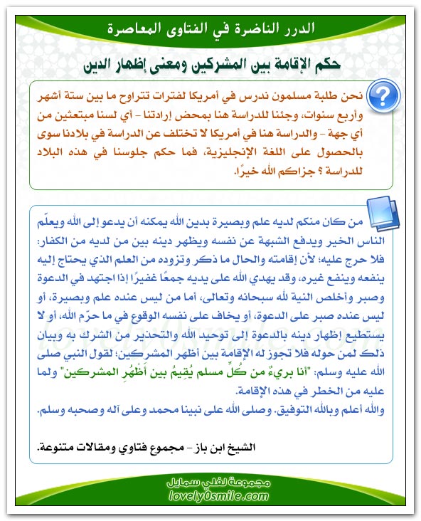 السلام على من اتبع الهدى الإقامة بين المشركين السفر إلى بلاد الكفار لفلي سمايل