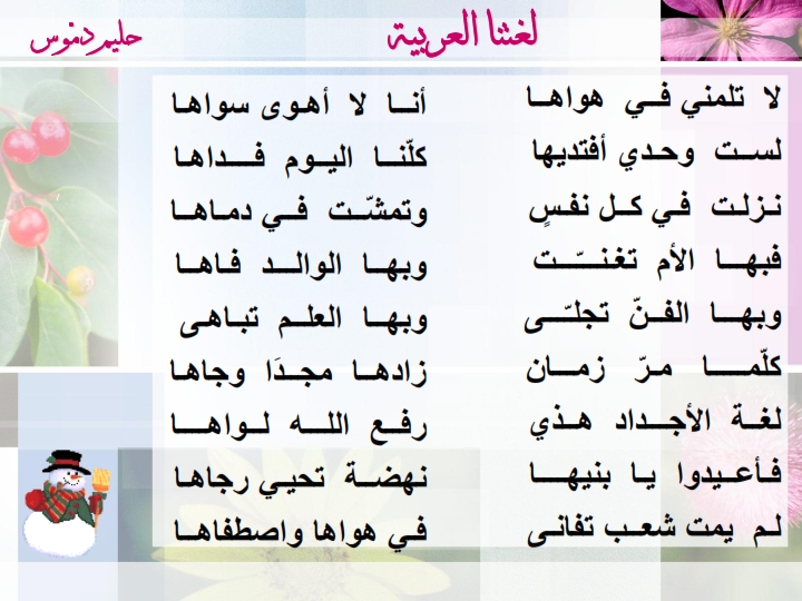 شعر عن اللغة العربية لاتلمني في هواها المرسال