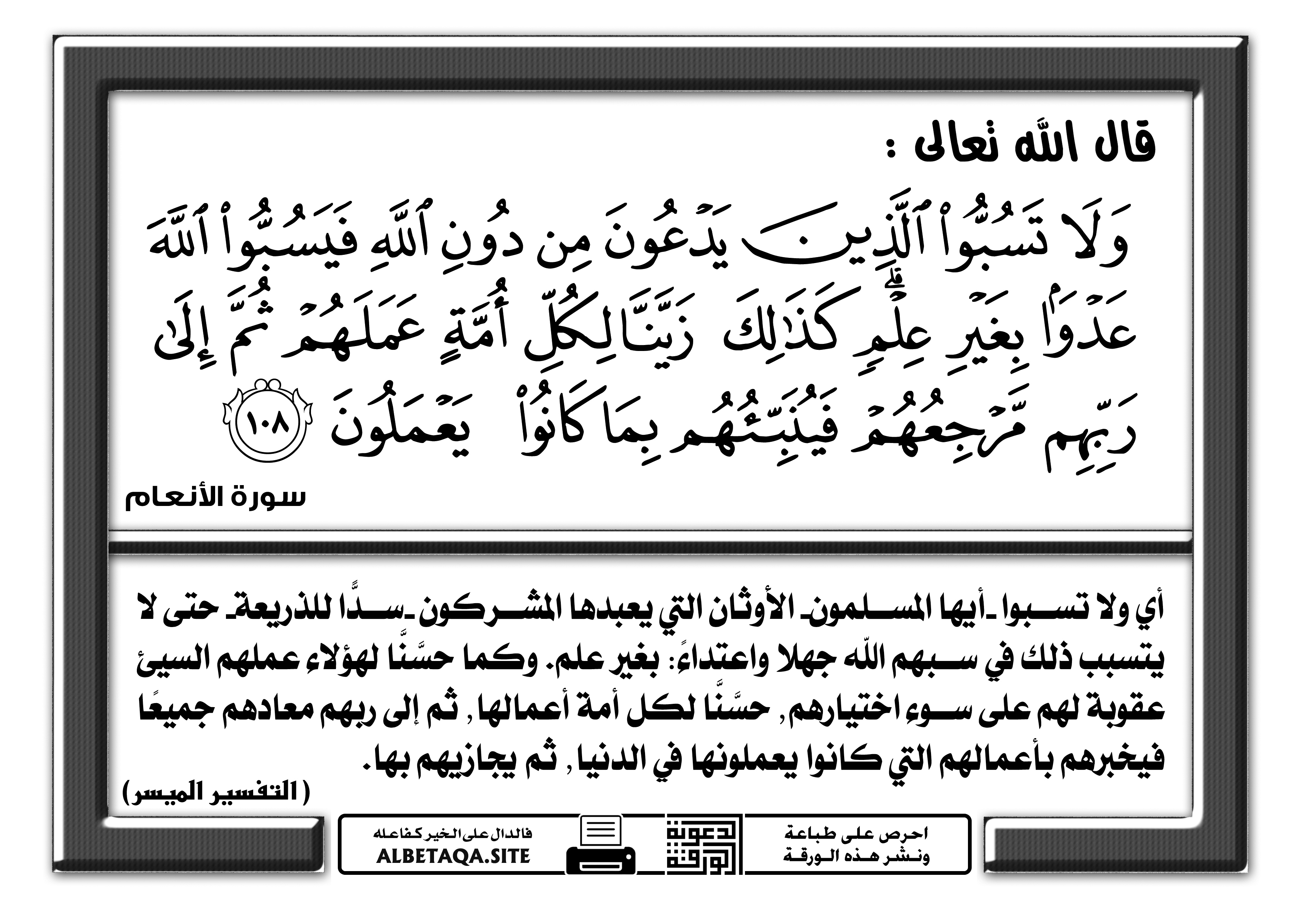 ولا تسبوا الذين يدعون من دون الله موقع البطاقة الدعوي