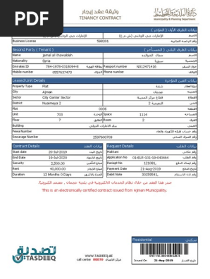 First Party Lesser This Is An Electronically Certified Contract Issued From Ajman Municipality Lease Common Law
