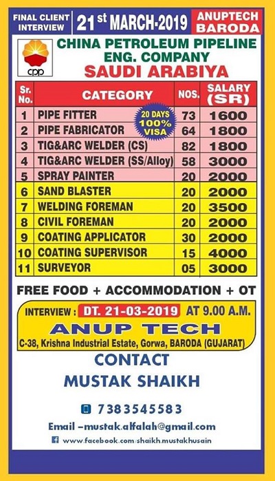 Requirement For China Petroleum Pipeline Engineering Company Saudi Arabia