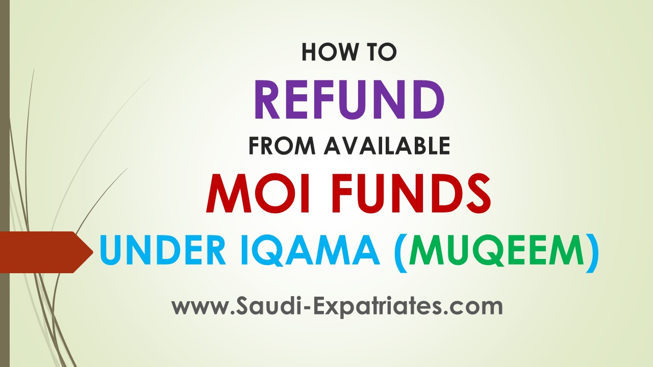 The next thing you have to do is login to internet banking account from which you have paid for the service. Bear in mind you can get only from available displaying funds when you are making a request but if you got delayed. Go to government payment might be different on your bank s website alternatively you can go to moi services. Refund or withdraw moi funds from iqama or muqeem.