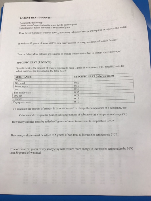 Solved Latent Heat S Points Assume The Following Latent Chegg Com